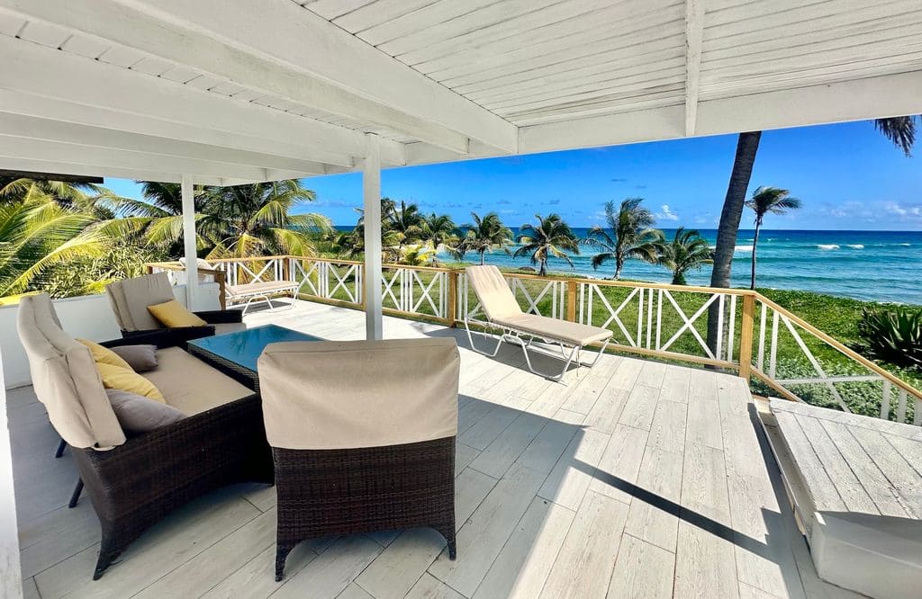 Villa Malu is a unique single-story luxury villa set on 9,610 sq.ft. at Surfers Point, Christ Church, offering uninterrupted ocean and beach views. Designed for seamless indoor/outdoor living, it features an open-plan layout, built-in seating, step-down lounge, expansive patio, hammock nook, sun deck, and a stunning rooftop terrace perfect for entertaining with 180° sea views. The home includes four air-conditioned bedrooms, three bathrooms, and ample storage. Outside, the property offers secure electric gates and a double-car garage with potential for a guest cottage. Located in the sought-after Inch Marlow area, it provides the ideal mix of coastal tranquility, surf culture, and convenient access to restaurants, shopping, and island attractions—making it an excellent private residence or high-performing Airbnb investment.